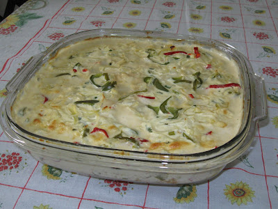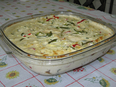 Cação ao molho de Leite de Coco e Requeijão ao forno.