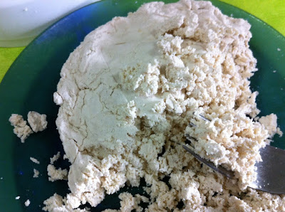 Achei esta receita aqui neste site de receitas vegetarianas e achei bastante interessante, pois andei procurando queijo ou requeijão de soja aqui em Manaus e não encontrei, então comecei a procurar receitas nos sites e achei esta bastante simples e fácil, com ingredientes fáceis de encontrar, basicamente água, soja e suco de limão. Deu bem certinho e o sabor fica bem delicado, com suave sabor de limão. Depois do queijo pronto amassei e temperei, ficou uma delicia!!